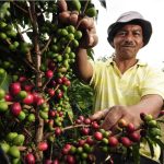 Siembra y cuidado de las plantas hasta la recolección de las cerezas maduras de café.